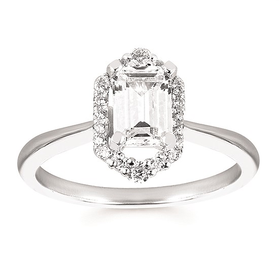 Engagement Ring Forever ElegantĀ® 1/6 Ctw. Diamond Semi Mount shown with 1 Ct. Emerald Cut Center Diamond in 14K Gold